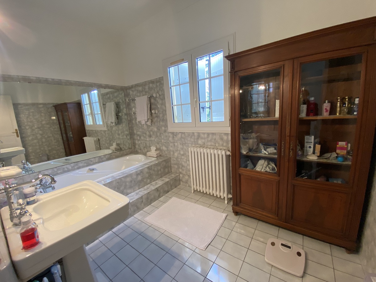 Etage : 4 chambres, 1 salle de bain, 2 salle d'eau + 2 dépendances avec salle d'eau+ wc , garage, piscine chauffée.
